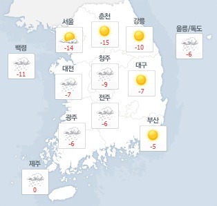 for "내일날씨 / 내일 날씨 강추위 꽁꽁, 전국 대부분 '영하권' 각 지역 기온은 ..."